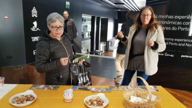 Quem não vai de carro mas sim de comboio e, depois de entrarem no Welcome Center, atravessarem a rua e irem à Estação de S. Bento comprar bilhetes para Baião, são os brasileiros Margarete e Júlio Veríssimo. Ela, professora universitária, ele, jornalista da Folha de S. Paulo, estão no Porto a fazer o doutoramento e contaram-nos que não resistem “a um bom salpicão gordinho”. A mãe de Margarete é portuguesa, apesar da professora ter nascido no Brasil, e “essa costela lusa” leva-a sempre “para estas coisas”. Conta, enquanto suspira.