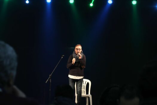 Lá fora, ventava e chovia mas, na tenda, entravam cada vez mais visitantes. Aproxima-se a atuação dos artistas mais aguardados do certame, 2 dos melhores humoristas nacionais, Miguel 7 Estacas e João Seabra, que deixaram o público em apoteose quando chamaram ao palco um simpático e bem-disposto visitante da feira.