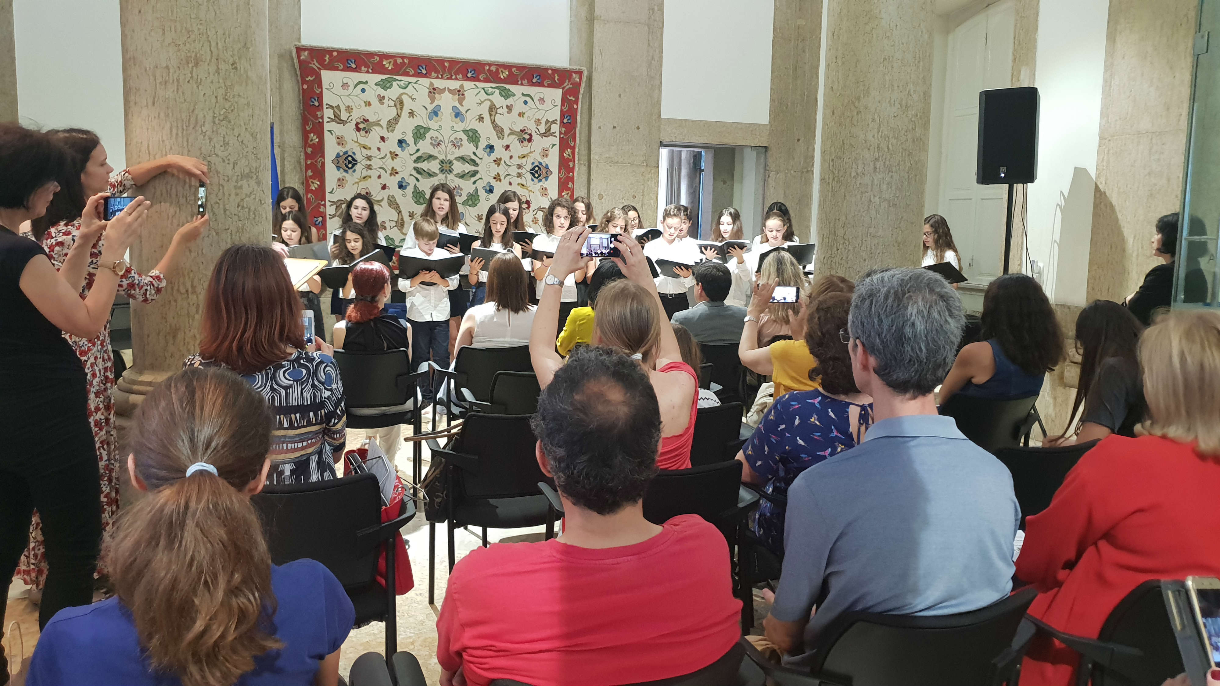 A sessão abriu com a atuação do Coro dos Pequenos Cantores da Academia de Amadores de Música, seguindo-se a apresentação do livro, que ficou a cargo da Ministra da Justiça, Francisca Van Dunem.