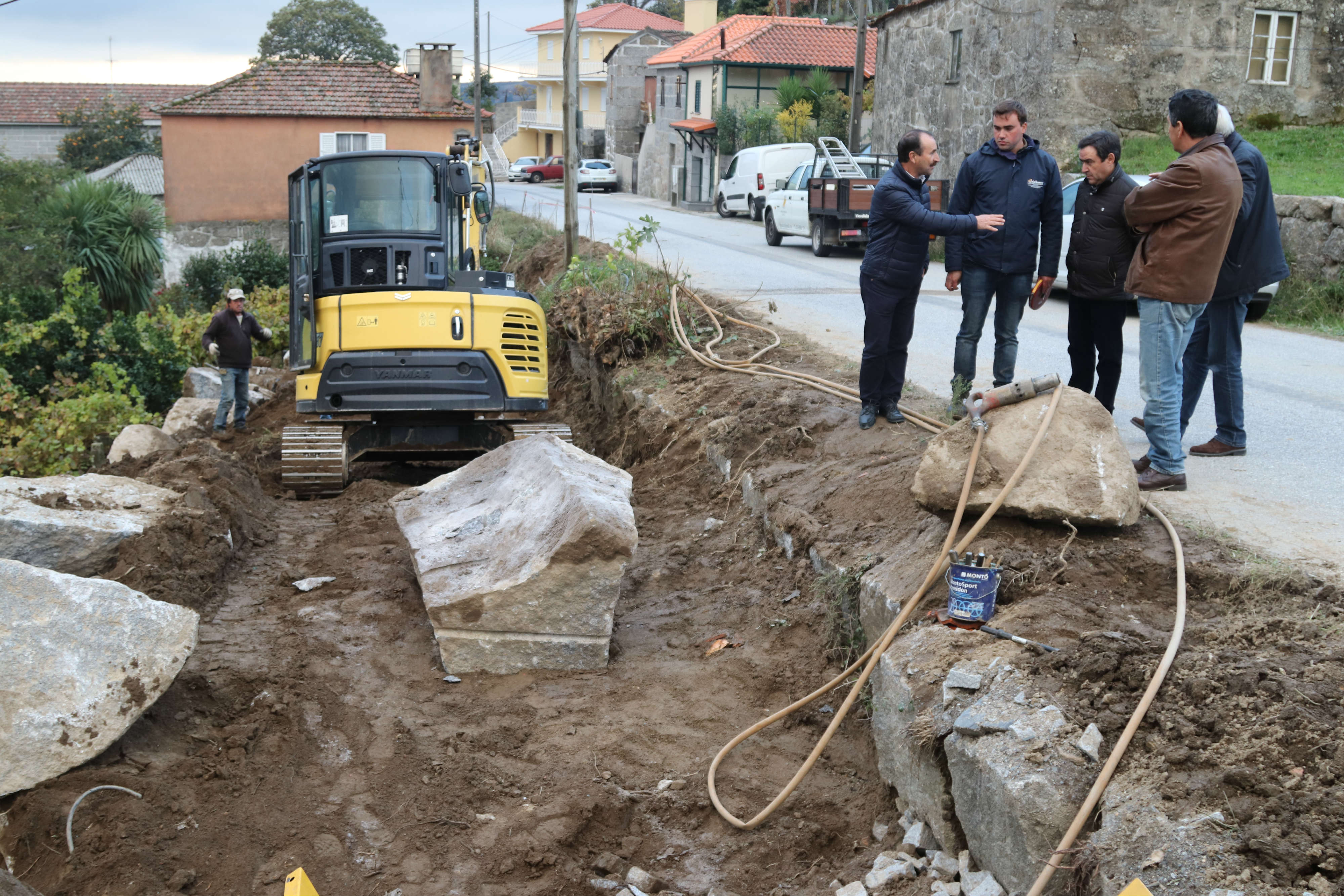 Em Teixeiró o autarca foi ao encontro dos trabalhadores que se encontram a executar, na Rua Central, um arranjo urbanístico. A obra está em fase de execução e contempla o aumento de muros de suporte, a colocação e assentamento de cubos de granito, bem como a colocação de mobiliário urbano. Depois de concluído o projeto, o novo arranjo urbanístico vai permitir verdadeiros momentos de fruição junto da comunidade local mas também dos turistas, já que se encontra num local estratégico.