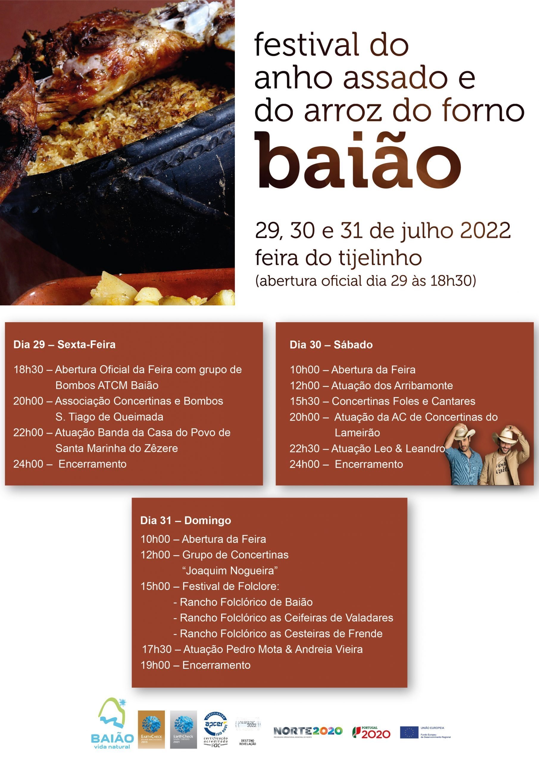 O festival abre esta sexta-feira, 29 de julho, às 18:30h com uma arruada a cargo do Grupo de Bombos da Associação de Trabalhadores da Câmara Municipal de Baião.