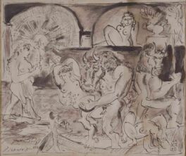 Outro dos artistas importantes presentes nesta exposição é Salvador Dali relevante pintor espanhol, conhecido pelo seu trabalho surrealista. As obras de Dalí chamam a atenção pela incrível combinação de imagens bizarras, oníricas, com excelente qualidade plástica. Dalí foi influenciado pelos mestres do classicismo. O seu trabalho mais conhecido, tem como título “A Persistência da Memória”, concluído em 1931. A obra de Salvador Dali patente nesta exposição intitulado “Projeto de decoração “é de 1954, exatamente no ano em que o artista pinta “Crucificação” obra que está no Museu Metropolitano de Nova Yorque. Esta obra descreve Jesus crucificado na rede de um hipercubo e contem uma imagem de Gala a esposa do artista.