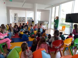 Nos dias 20, 22 e 23, 123 alunos do 1.º ano foram conhecer a Biblioteca Municipal António Mota, onde participaram numa sessão de poesia com a leitura do livro “Era uma Vez um Cão”, uma obra que estimula a memorização e desperta o gosto pela leitura e pela escrita, da autoria de Adélia Carvalho e com ilustrações de João Vaz de Carvalho.